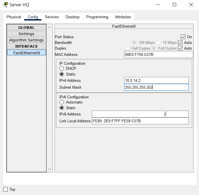 HQ(config-if)#ip address 10.0.14.1 255.255.255.252