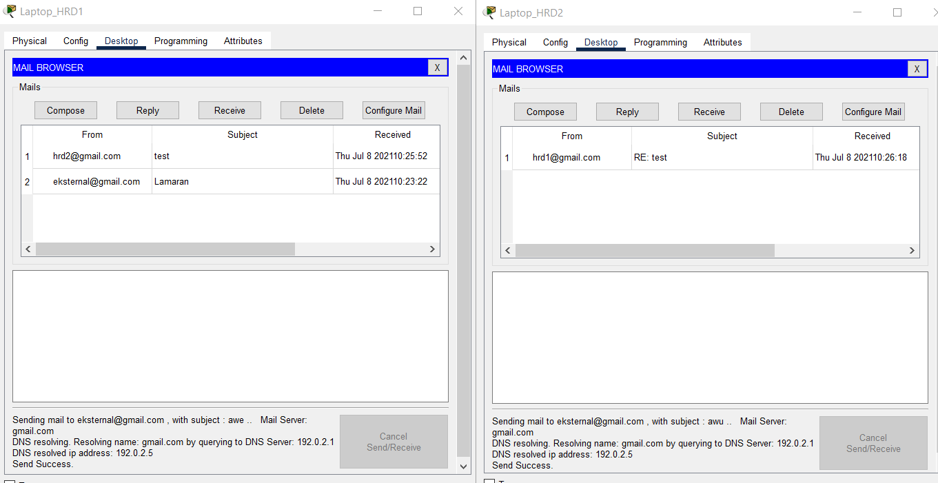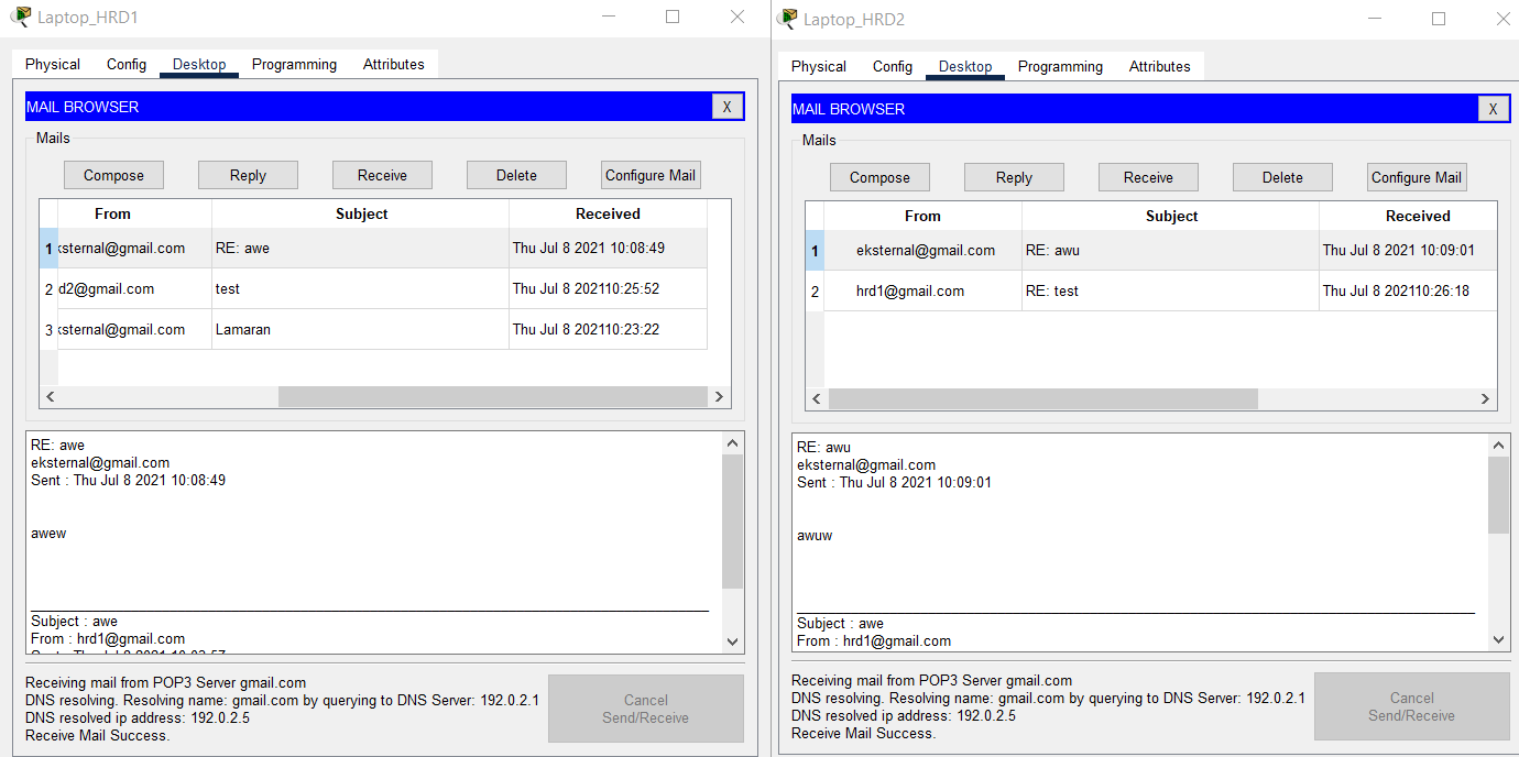 - Use Simple PDU to verify the connection between the End Device on VLAN SALES and WLAN ENGINEER at BRANCH SUMBAWA and the End Device on VLAN HRD and MARKETING at HQ MATARAM.