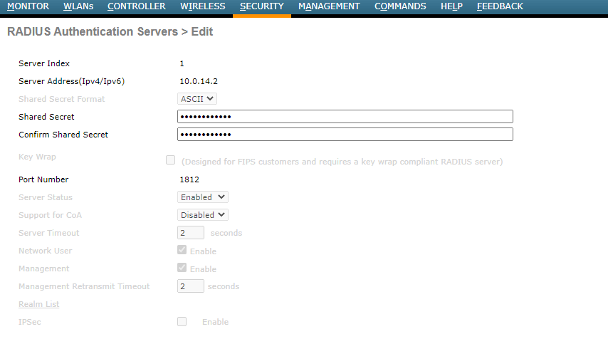 - Radius Configuration.